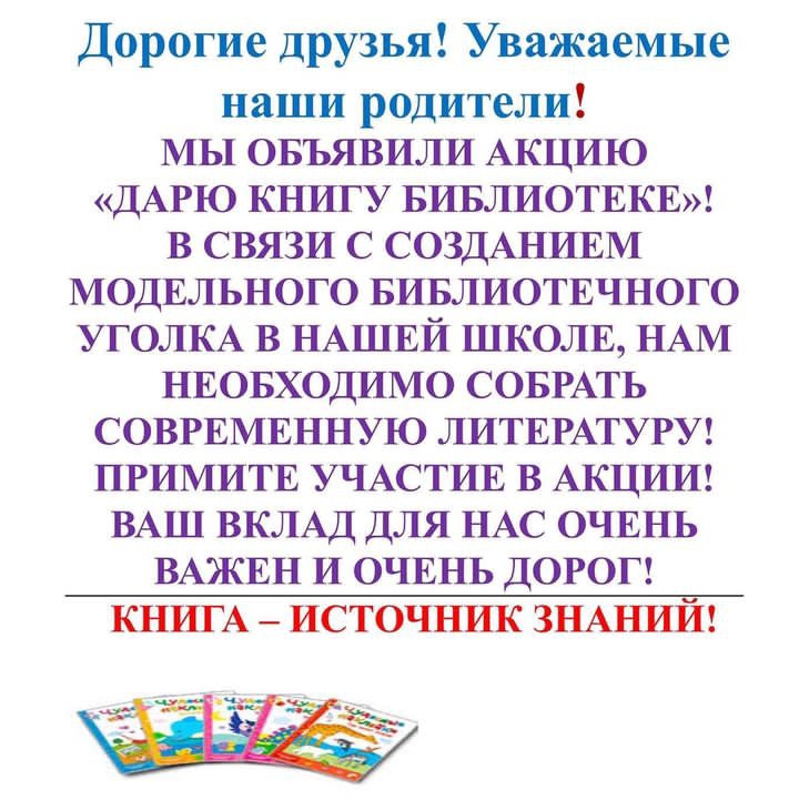 Дорогие друзья! Мы объявили акцию "Дарю книгу библиотеке"!