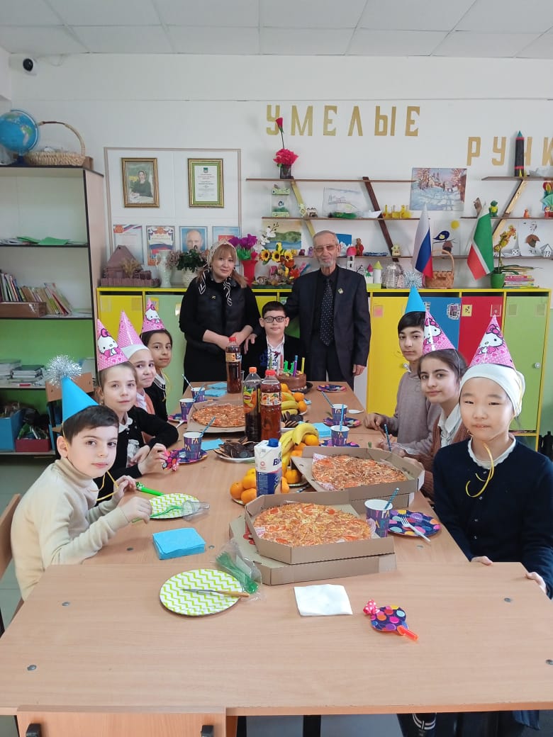 11.01.2024Сегодняшнее внеурочное мероприятие в 4 классе совпало с днем рождения нашего одноклассника Уматгириева Джабраила. Поздравить именинника пришли мама и дедушка. Все поздравили Джабраила с днем рождения и пожелали ему успехов в учебе и жизни.
