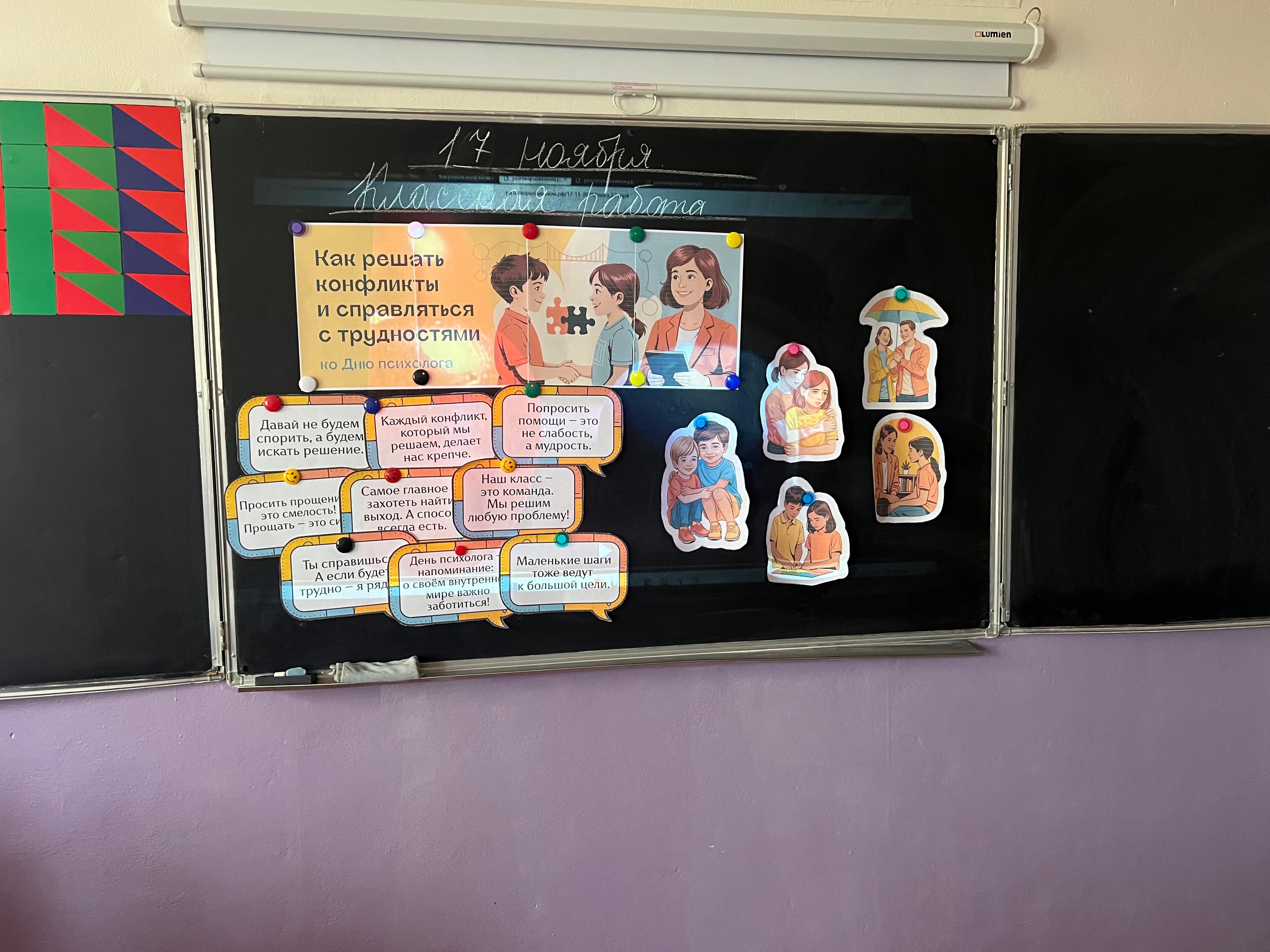 В понедельник, 17 ноября, в нашей школе состоялся очередной урок из цикла «Разговоры о важном», который прошел в преддверии Дня психолога. Занятие посвятили профессии психолога и одной из самых актуальных тем в жизни любого человека — умению решать конфликты и справляться с жизненными трудностями.✅ Основной акцент беседы сделан на причинах возникновения конфликтов, возможных путях их преодоления, а также на необходимости уметь выстраивать гармоничные отношения с окружающими, основанные на уважении и взаимопонимании. Отдельно поговорили о современных возможностях получения профессиональной психологической помощи в трудных жизненных ситуациях.👍🏻✅